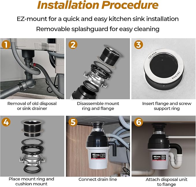 - ššššššš šš šššš: TECASA garbage disposal is suitable for most home kitchens for standard 3-1/2 inch sink opening hole. A pre-installed 39" power cord for electricity connection.